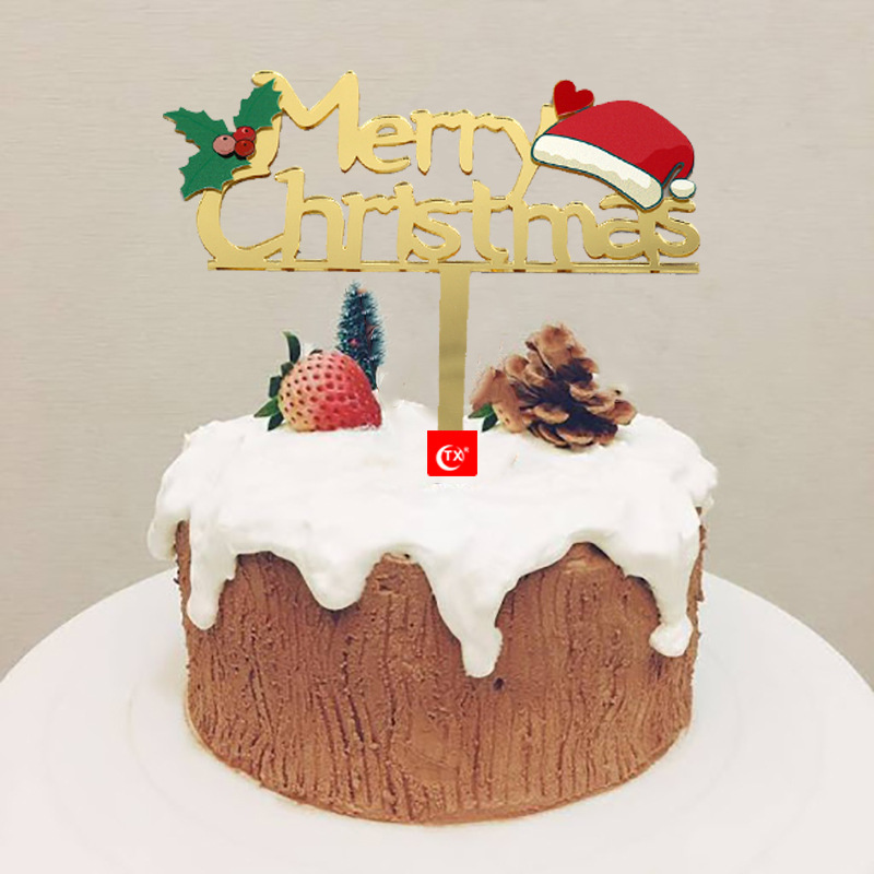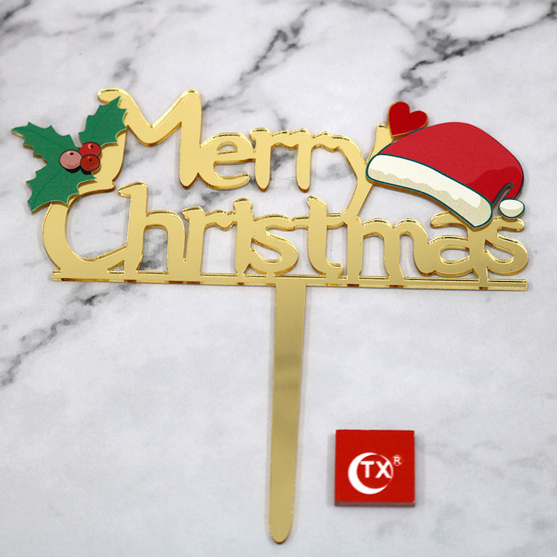Merry Christmas Christmas hat acrylic cake topper insert card