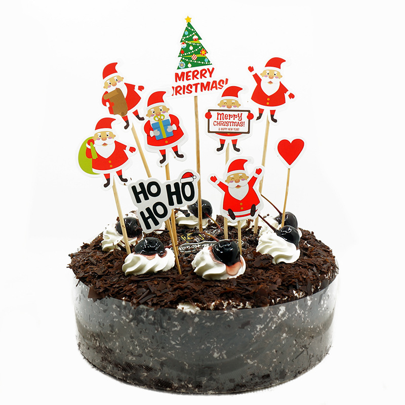 9 Piece Set Of Cartoon Santa Claus Cake Card Decoration