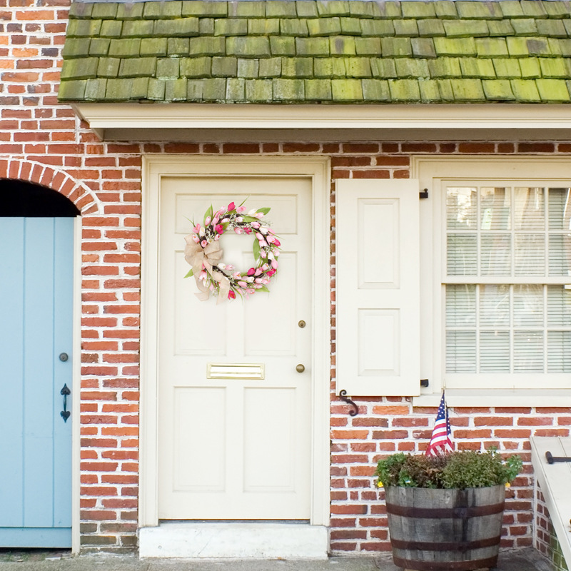 Made from premium artificial tulips and a sturdy base, the wreath keeps its shape and color season after season. No watering or maintenance required.